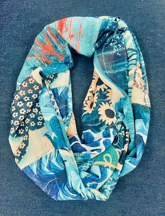 Sold out"Blue Patchwork" Infinity Art Scarf.