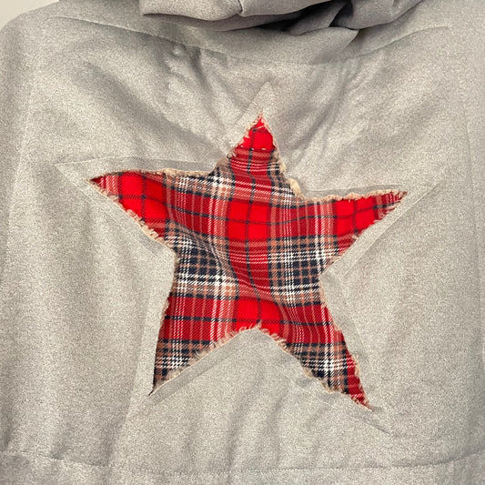 Upcycled Fleece Lined Grey Hoodie with Vintage Red Flannel Stars Patches Jacket Upcycle Sz LRegular price $85.00 AUDRegular priceUnit price / per-