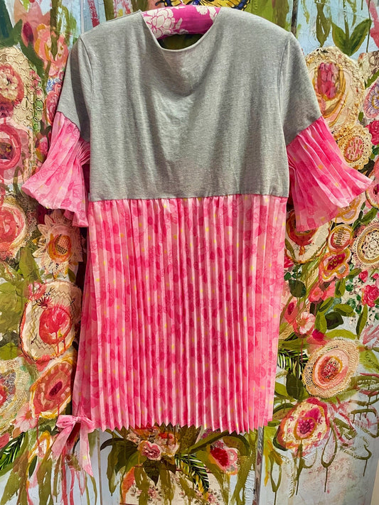 Upcycled Angel Devil print T Shirt Smock Dress with Pink Pleats.Regular price $85.00 AUDRegular priceUnit price / per-