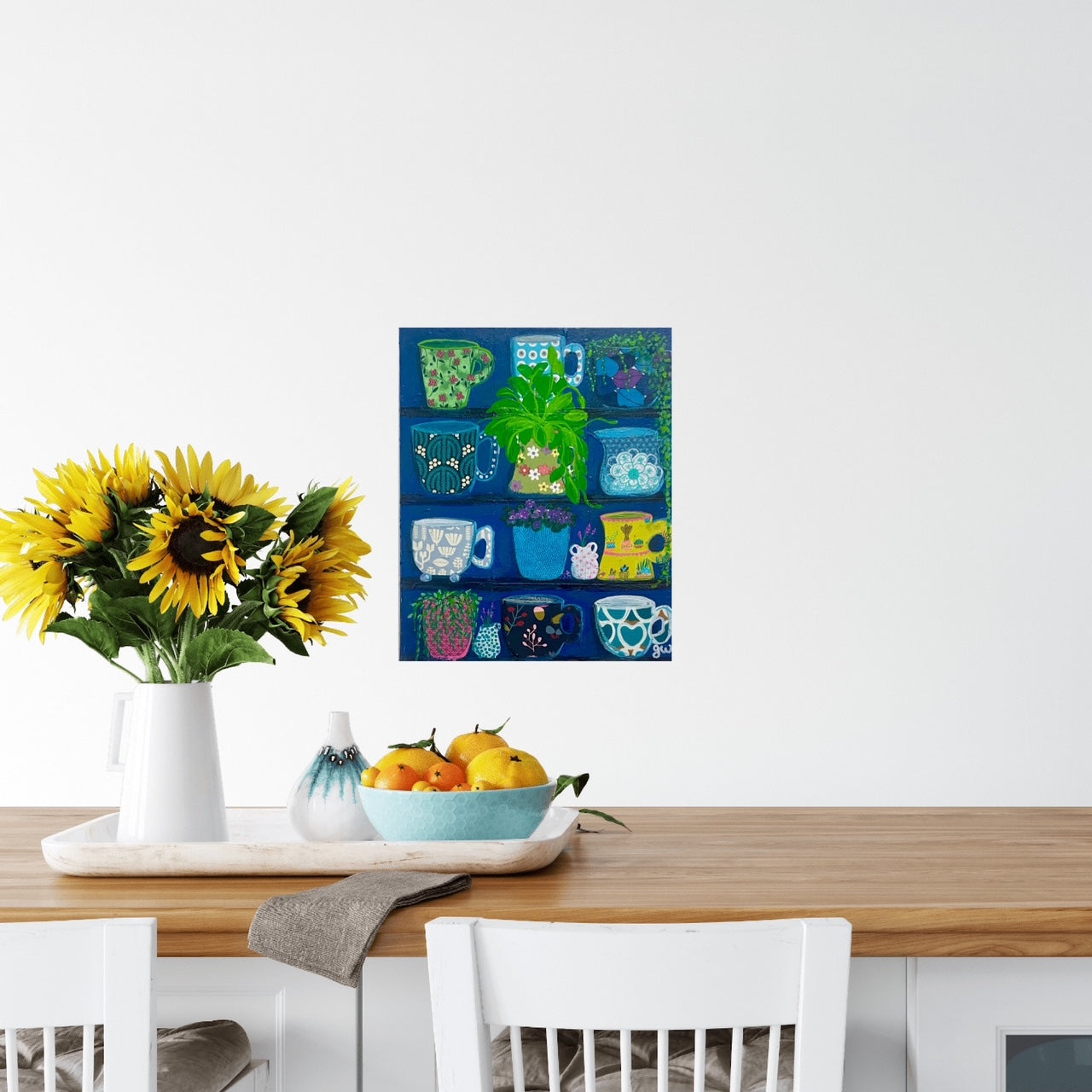 This is a bright and colourful arrangement on shelves and the Little artwork would look amazing in any kitchen or country, rustic style home.