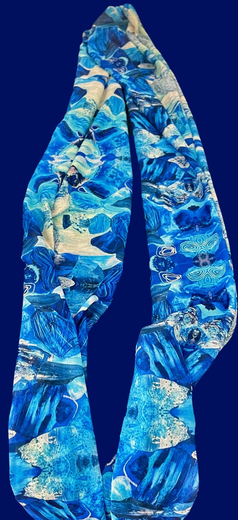 "Subterranean Blue" Infinity Art Scarf printed from an original artwork by Julie Weston.
